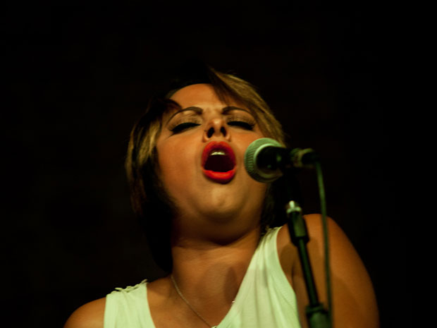 Shirley Oliveira durante apresentação no bar The Orleans, em São Paulo (Foto: Caio Kenji/G1)