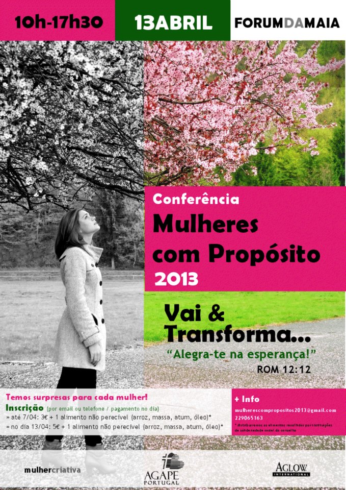 O nosso desejo profundo é que Deus seja glorificado e que se deleite na comunhão entre todas nós. Esperamos ainda que cada participante saia mais encorajada e fortalecida, pois há razões para termos esperança e alegria e o nosso Deus conta connosco para que levemos essa alegria e essa esperança ao mundo! Vai & transforma...