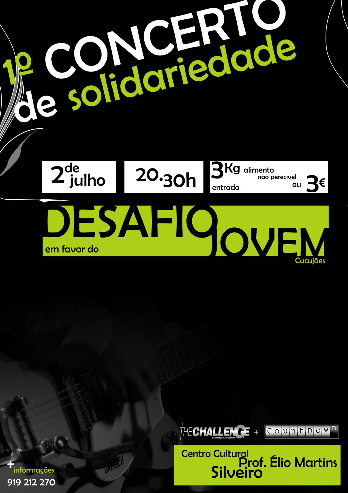 Um concerto de solidariedade para com o Desafio Jovem em Cucujães, instituição de reabilitação social que tem passado por severas dificuldades. Temos a certeza que não serão os 3€ ou 3Kg de alimento não perecível que farão diferença no teu orçamento final, mas farão uma grande diferença na mesa destas pessoas.