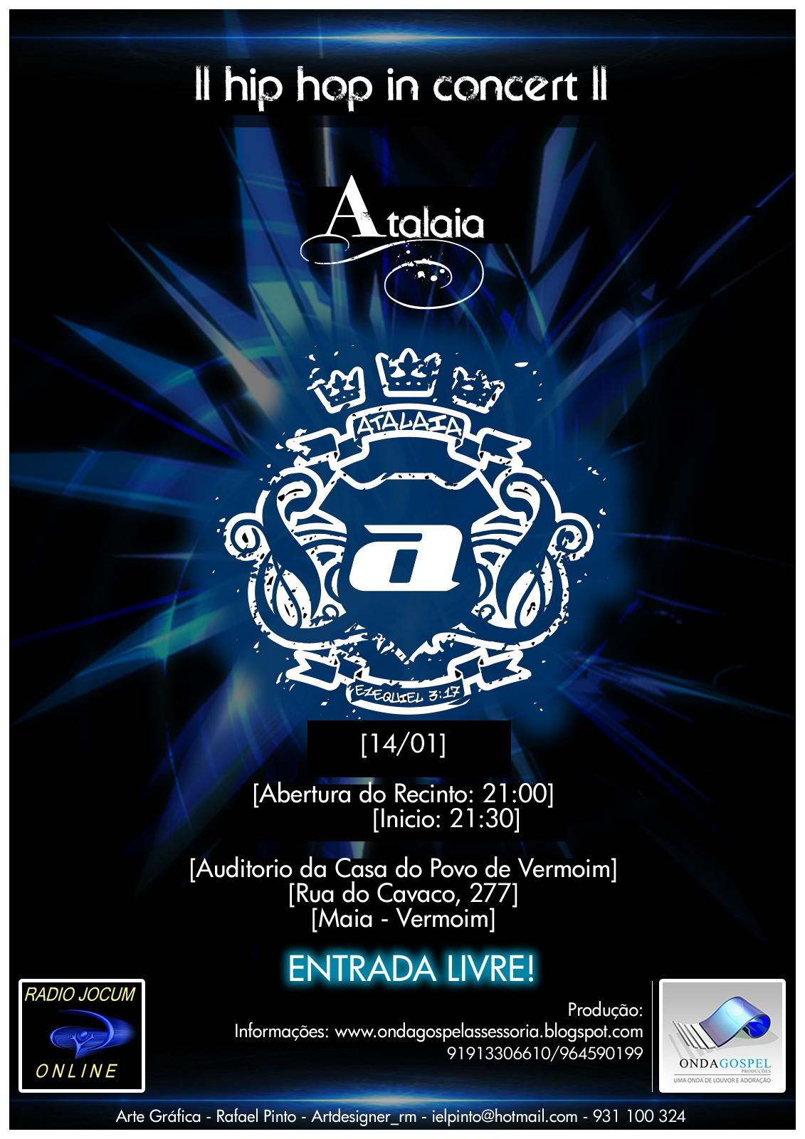 CONVIDA TEUS AMIGOS, OS AMIGOS DOS TEUS AMIGOS E VEM CURTIR O HIP HOP IN CONCERT E VERÁS COMO É QUE O HIP HOP CRISTÃO LEVA A MENSAGEM DA SALVAÇAO ATRAVÉS DAS RIMAS.